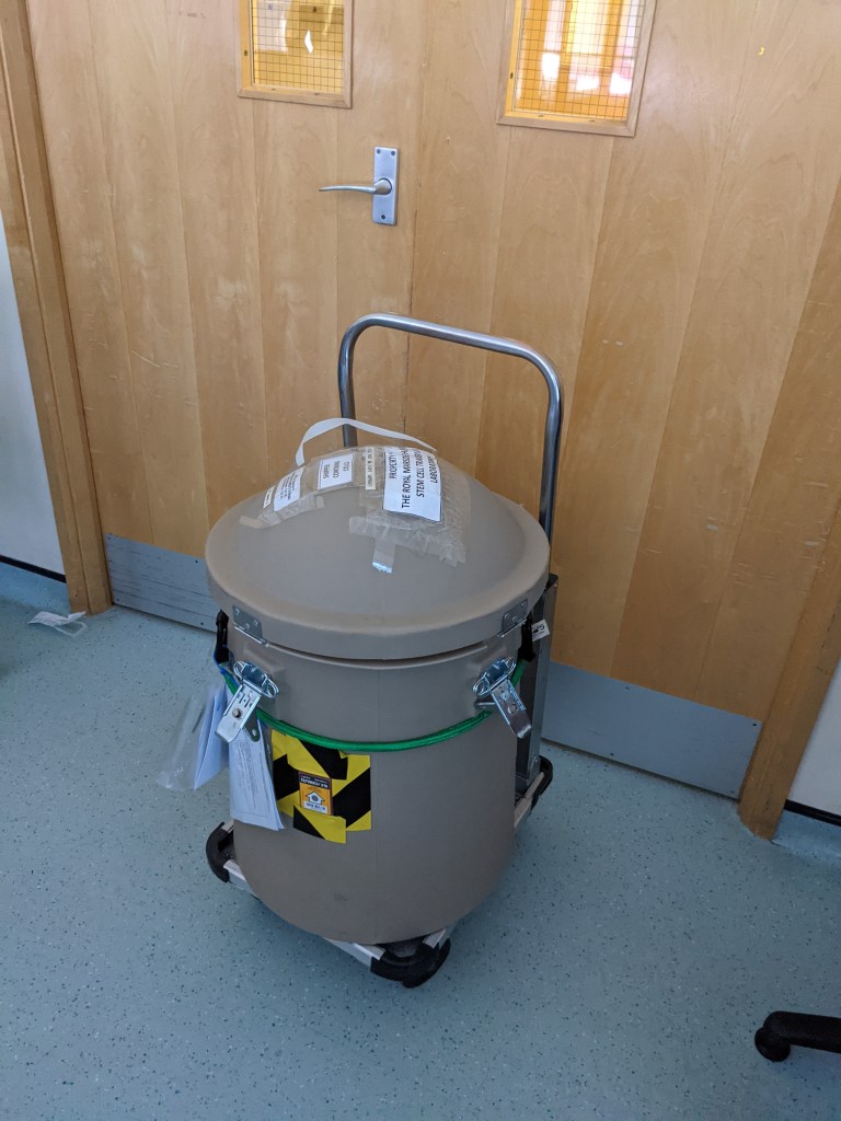 The stem cell transplant went well. The team from the Marsden came and Eloise’s stem cells were transported in a cubicle (see below) into intensive care. The nurses then took out the cells, warmed them up in a specific water machine to un-freeze them and then gave them to Eloise via her Hickman line. All of this was meticulously timed and managed. She’s had no side effects thus far, which is fantastic.